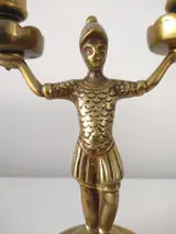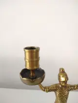 Een antieke koperen wachter, soldaat met ruimte voor 2 kaarsen. Ze hebben een Romeinse Revival stijl. Uit de 19e eeuw.