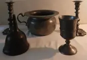 2 tinnen kandelaars 20x11 cm
