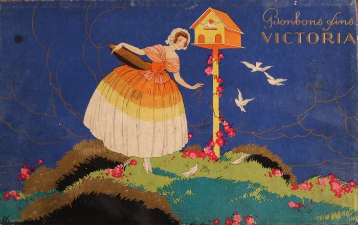 Fraaie antieke kartonnen doos voor bonbons.