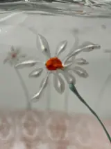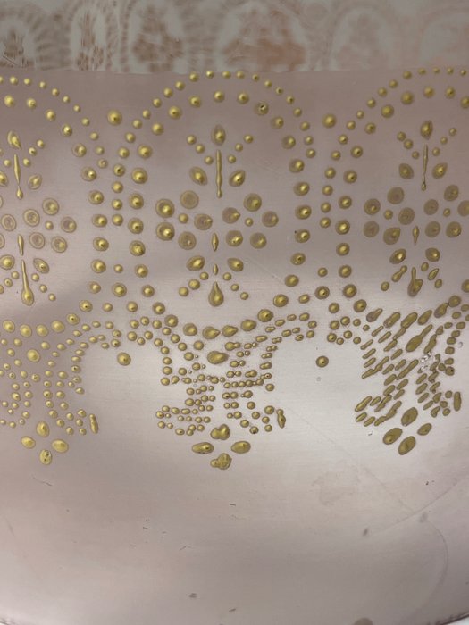 onderaan is het glas stylistisch bewerkt met stippen in patroon