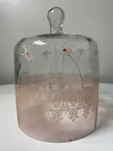 zeer mooie fraaie kaasstolp met onderaan mat glas en bovenaan klaar glas.