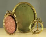 Mooie set ronde en ovale goudkleurige fotokaders.