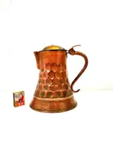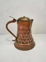Ik moet een object aanbieden dat afkomstig is uit een particuliere familiecollectie. Een grote antieke kruik. Handgesmeed uit koper. handgemaakt. Frankrijk 19e/20e eeuw. Afmetingen, hoog 23 cm, diameter 18 cm.