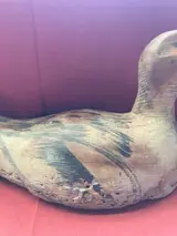De eend toont onderaan sporen van aantasting door water en houtworm, maar werd grondig behandeld tegen houtworm