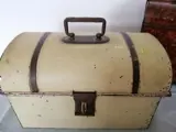 Nog weinig voorkomend is dit blikken zeer oude lunch trommeltje. Fraai handvat met patroon, wat herkenbaar is aan de Art Deco periode.