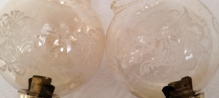 Son globe fumé rond de 14 cm de diamètre et les fleurs gravées à l'acide au sommet une dentelle vasée.