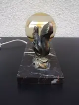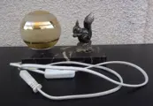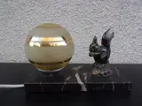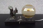 prachtige bureaulamp gedecoreerd met een eekhoorn in spelter met metallic patina op een marmeren voet