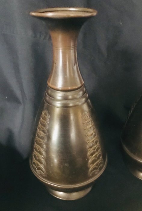 2 schitterende art nouveau vazen, gemaakt van koper met een prachtig patroon.