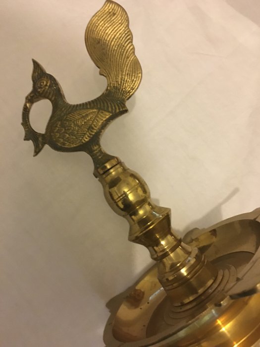 Een Indiase pauw vrijstaande asbak van messing uit de jaren '60 of '70