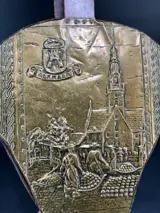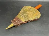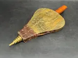 Schitterende unieke houten blaasbalg die nu mooi als decoratief object neergezet kan worden, de blaasbalg komt uit Alkmaar en heeft prachtige decoratie van de kaasmarkt in Alkmaar.