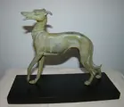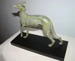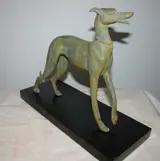 Afgezien van een slijtage aan de achterkant van de rug, is deze art deco windhond in uitstekende staat