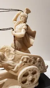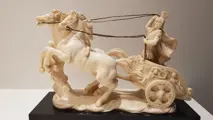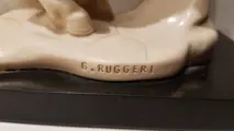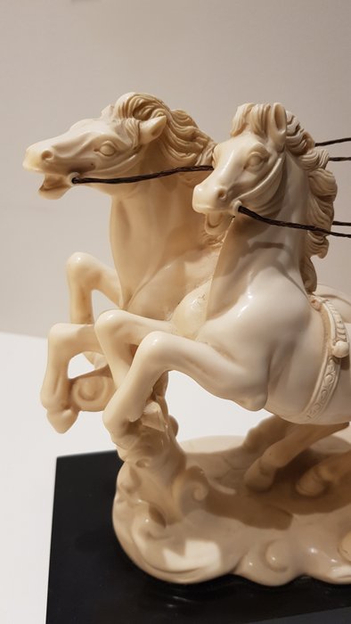 Beeldromeinse krijger met paarden van G.Ruggeri op zwarte sokkel .