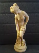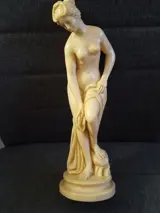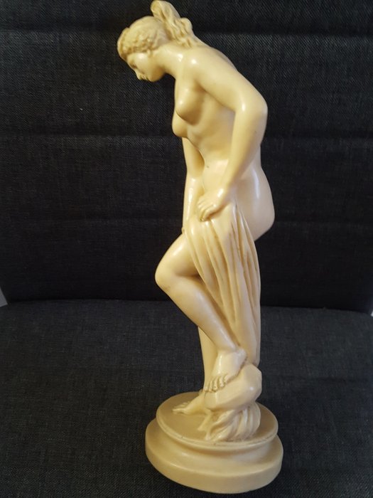 Klassieke figuur sculptuur gemaakt in Italië gesigneerd A.SANTINI die een naakte vrouw voorstelt, gevangen, de linkervoet rustend op een rots - hoogte van de basis ongeveer 3 cm