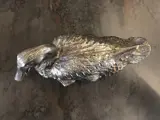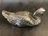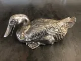 Sculptuur van prachtige finesse van een eend in verzilverd brons.
