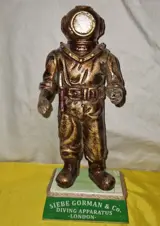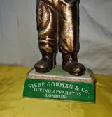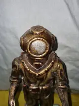 Sculptuur,beeld van een duiker in een oud duikerspak
