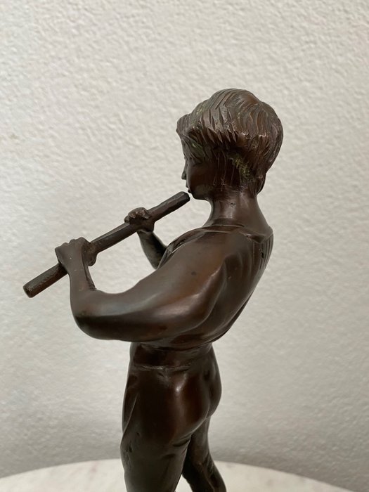 Beeld, fluit spelende jongen - Brons