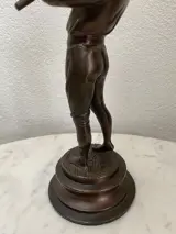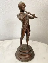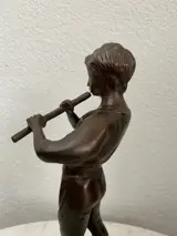 Bronzen beeld van een fluit spelende jongen. Mooi gedetailleerd en afgewerkt.