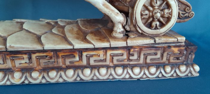 Prachtig beeld Romeinse gladiator met strijdwagen en twee paarden, elegant gepatineerd ivoorkleur, met signatuur (mij helaas niet bekend) gemaakt van hars 43cm lang, 32cm hoog, 16cm breed en bijna 5kg zwaar, geen beschadigingen