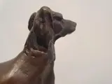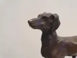 Prachtig gevormde hond uit brons met massief marmeren sokkel. Klein maar gedetailleerd uitgewerkt. mooie patina op het brons.