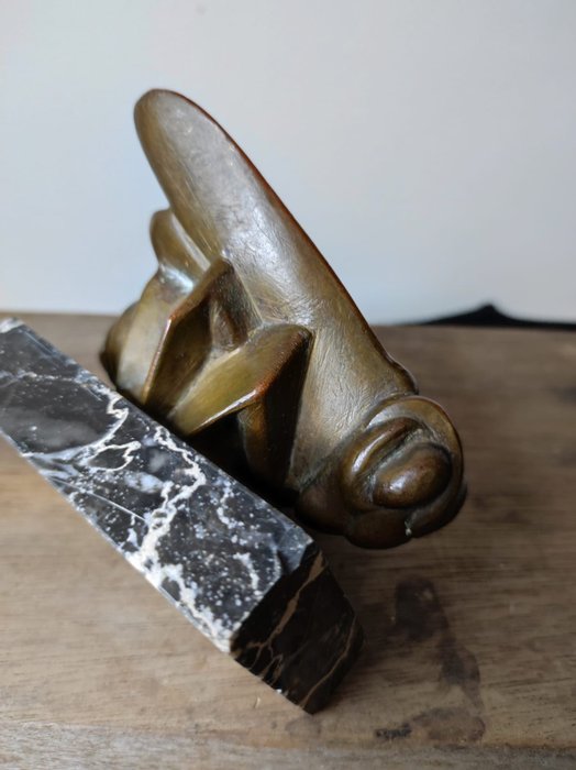 Art deco bronzen bij met marmeren voet, mooi patina