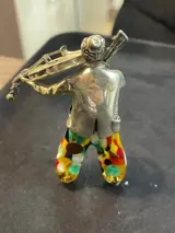 Zeldzame muzikale clowns van de Italiaanse kunstenaar Vittorio Angini, in sterling zilver en Murano glas.