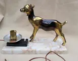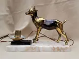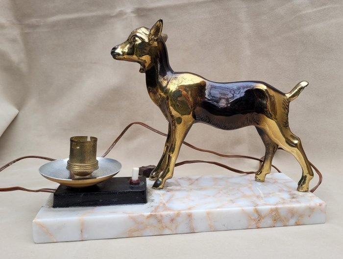 In zeer goede staat. Tafellamp uit Art Deco periode. Het heeft een marmeren voet en een metalen lamsbout erop. Stekkerdoos, schakelaar, de draad, alles is origineel. Ik probeer nooit of het werkt, omdat ik niet weet hoe ik de lamp daar moet plaatsen. Controleer alle foto's alvorens te bieden.