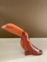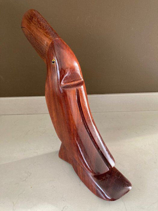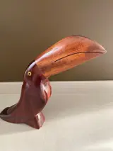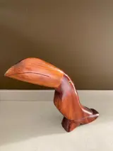 Prachtig vintage teakhouten beeld van een Toekan. Volgens de overlevering uit Denemarken. Gemaakt in de jaren 70. Beeldje is in uitstekende staat. Zie de foto's.