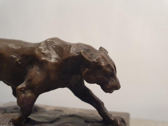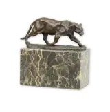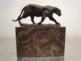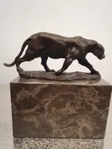 Prachtig gevormde panter uit brons met massief marmeren sokkel. Klein maar gedetailleerd uitgewerkt. mooie patina op het brons.