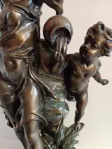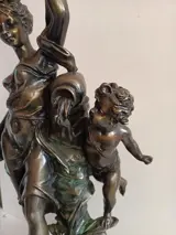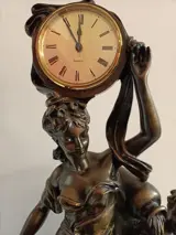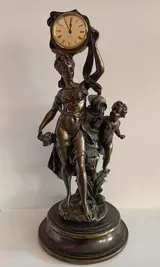 Kostbaar bronzen beeld van een waterdrager met een kind. Met moderne en functionele klok.
