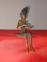 Bronzen beeld zittende lezende vrouw