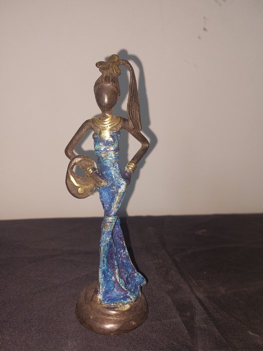 Beeldje voorstellende een Afrikaanse vrouw - 21 cm (1) - Brons