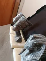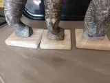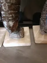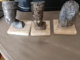 3 Oude messing buste beelden en beeldjes op een marmeren sokkel Toetanchamon, Nefertiti, Cleopatra.