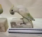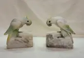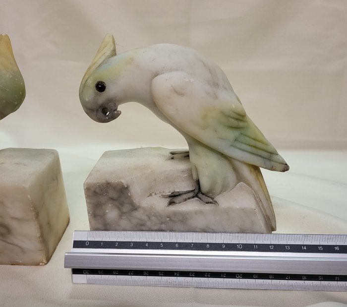 Paar Papegaaien Parkieten Marmeren Sculptuur Directe Grootte"
