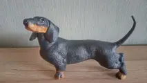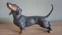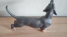 1 Vaga International Akita 7733 teckel. 1 zwart met rode teckel biscuit porselein. 1 zwart met rode teckel van bijna 15 cm van de punt van de neus tot de staart, en 10 cm van de voet tot de bovenkant van het hoofd. Het heeft Akita 7733 gestempeld op een voorste poot. Hij heeft alle mooie raskenmerken en is zeer goed gemodelleerd.