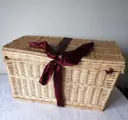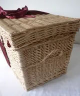 De mand meet 57 x 33 cm, hoogte is 30 cm.De picknickmand is in prima conditie.