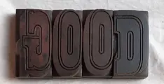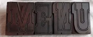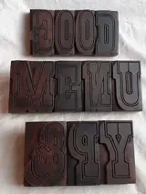 Mooie GROTE antieke perenhouten letters: "GOOD", "MENU" and "&PY"