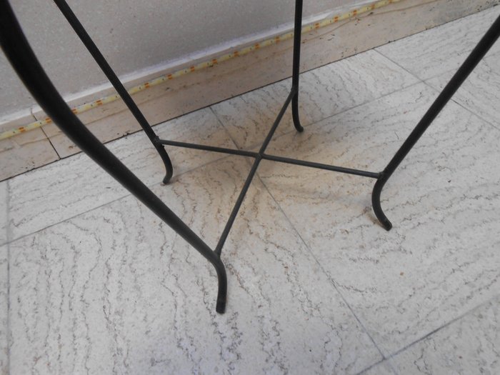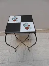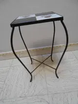 Bijzettafel of bloementafel met de typische zwart/wit tegels en bloemenmotief uit de jaren 1950/1960 in uitstekende staat, geproduceerd in België.