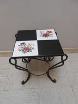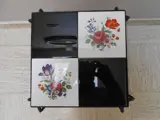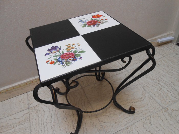Bijzettafel of bloementafel met de typische zwart/wit tegels en bloemenmotief uit de jaren 1950/1960 in uitstekende staat, geproduceerd in België.