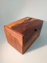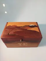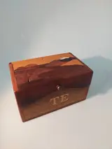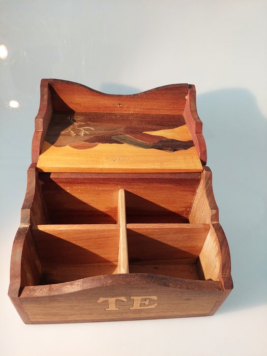 Een erg mooie theedoos, gemaakt van verschillende (hard) hout-sooorten.