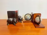 Set van vier boekenhouders, in goede stabiele staat, prachtige decoratieve objecten. Er zijn ouderdomssporen van gebruik.(zie de foto's)