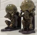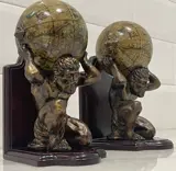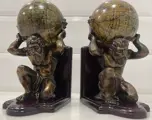 Mooie atlas boekensteunen en globes met oude lithografie. Atlas van verguld brons met een prachtige patina en bollen van kartonnen steen met bronzen overlays. Een echt zeer decoratief verzamelobject waarvan de elegantie het uniek maakt.