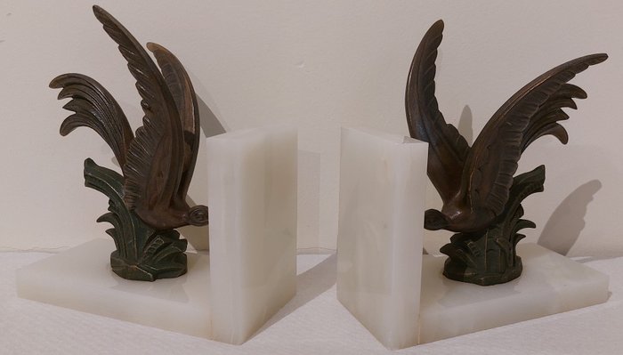Prachtige Art Deco boekensteunen met vogels