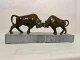 De stieren zijn massief brons en gestempeld "brons" op één achterpoot. Groenbruine patina in goede staat.
