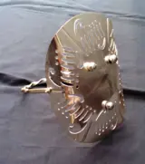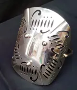 In de metalen plaat zijn ter versiering uitsparingen uitgestansd.