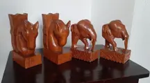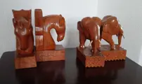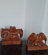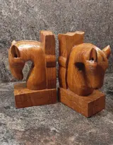 Twee prachtige hardhouten vintageboekensteunen. Paard Olifant
