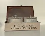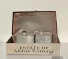 Een metalen doos en twee metalen veldflessen. De afmetingen komen uit de doos. Het gewicht is de doos plus de twee cantienens