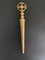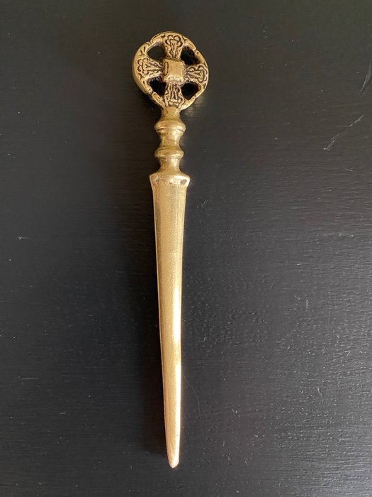 Prachtige oude messing briefopener. Aan het uiteinde een kruis. Land van herkomst onbekend.