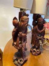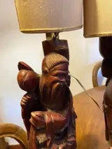 Twee bewerkte houten lampen, goede staat, werkend.