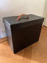 Leren handgreep op de hoedendoos.