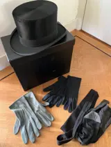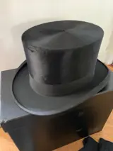 Sjieke zwart satijnen hoge heren hoed in originele hoedendoos. Gemerkt Burton.